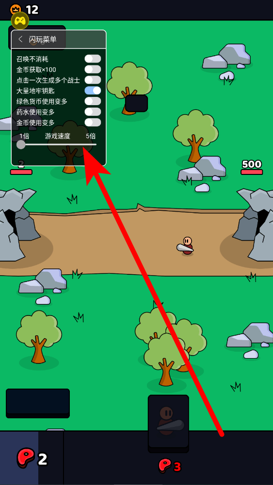 4、使用作弊菜單,在游戲中找到并使用作弊菜單,菜單能提供召喚不消耗、金幣獲取倍增等便利功能,助力游玩對(duì)戰(zhàn)。