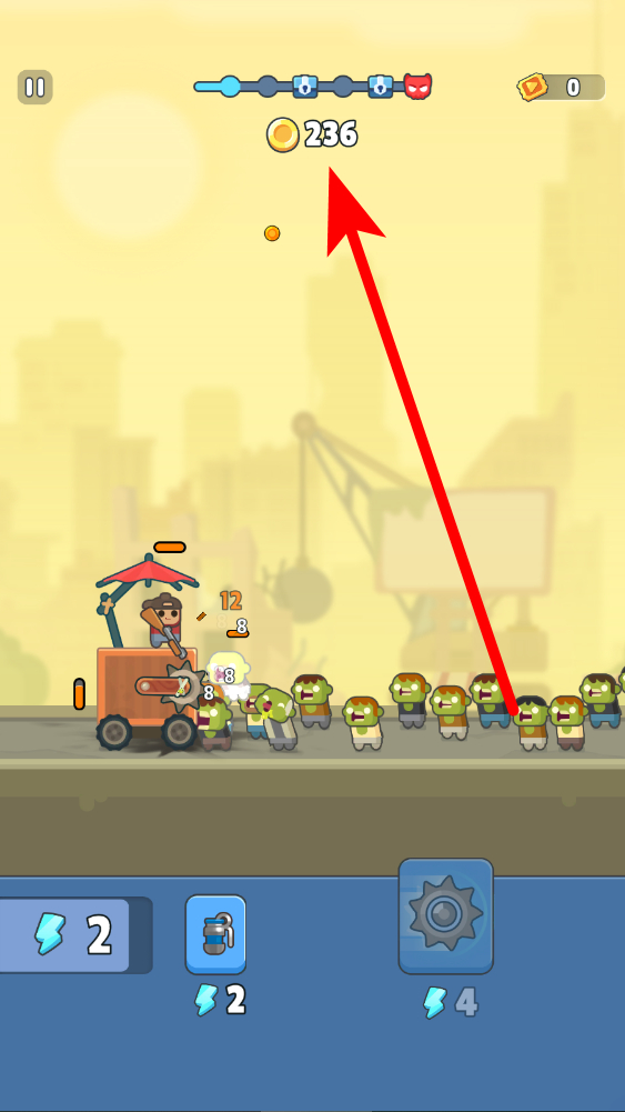 4、擊敗僵尸獲取金幣,成功擊敗僵尸后,能夠獲取金幣,這些金幣可用于后續(xù)載具進(jìn)化、道具購買等,助力地在喪尸之城冒險(xiǎn)。