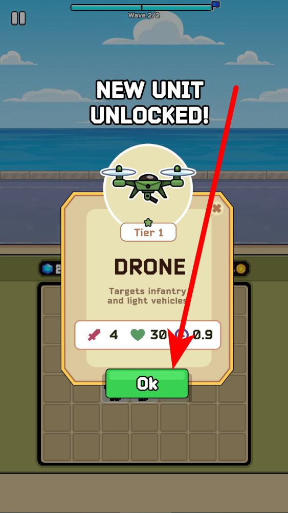 3、努力思考達成通關(guān)的條件,當順利通關(guān)后,就能解鎖新的作戰(zhàn)單位無人機,獲得可以針對步兵和輕型的車輛攻擊的新戰(zhàn)力。