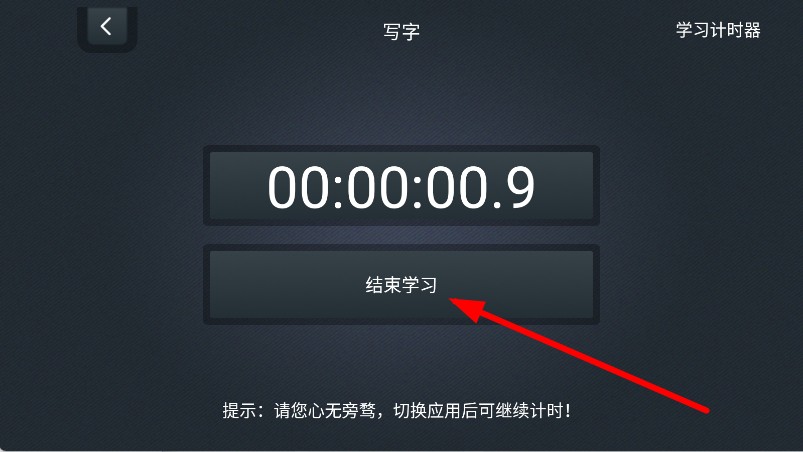 5、計(jì)時(shí)完成后,點(diǎn)擊結(jié)束學(xué)習(xí)按鈕,完成寫字學(xué)習(xí)計(jì)時(shí)。