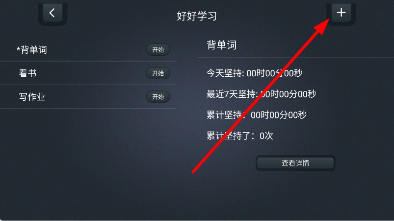 2、在學(xué)習(xí)計(jì)劃頁(yè)面,點(diǎn)擊右上角+按鈕,彈出輸入名稱的彈窗。
