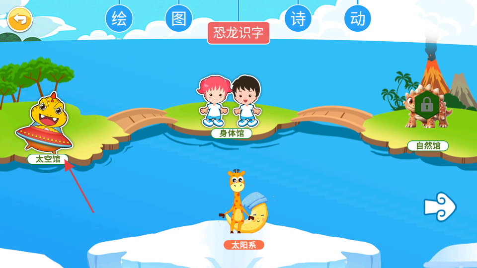 2、在主界面,點(diǎn)擊太空館,進(jìn)入太空館學(xué)習(xí)頁面。
