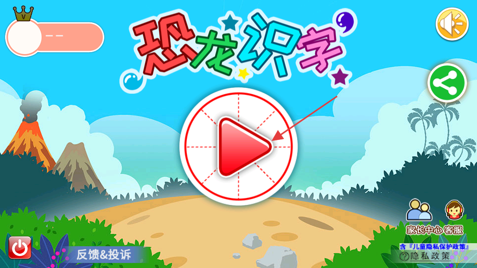 1、點(diǎn)擊紅色播放按鈕,正式進(jìn)入恐龍識(shí)字主界面。