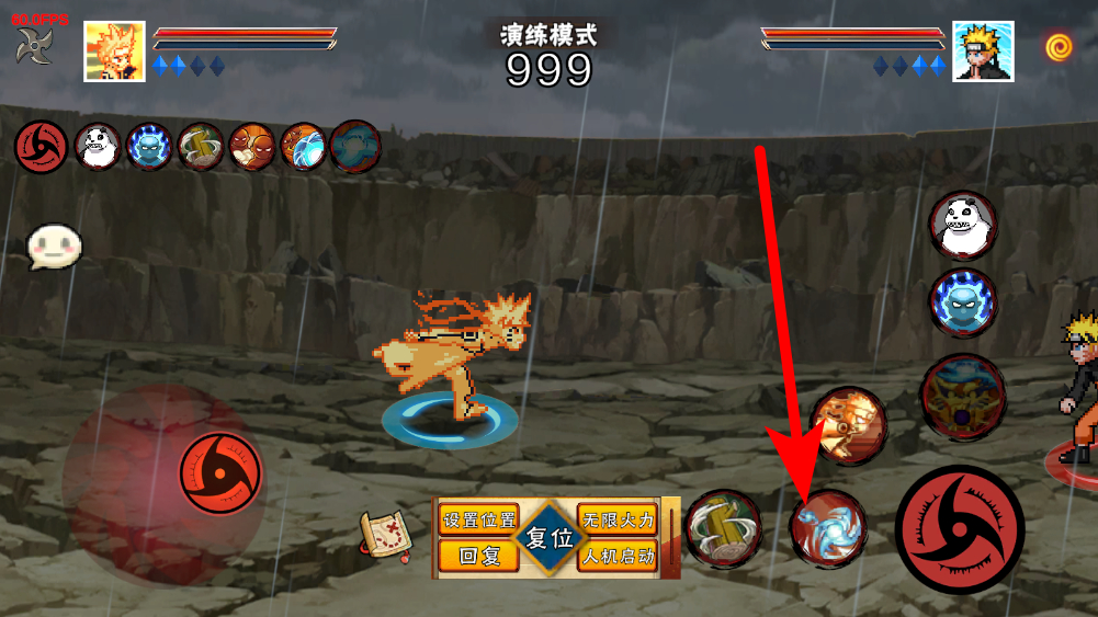 3、進入戰(zhàn)斗后,屏幕下方有各類技能按鍵,玩家可點擊對應(yīng)的技能按鍵,釋放忍者的專屬忍術(shù),像部分角色能釋放具有強大沖擊力的螺旋丸類技能。