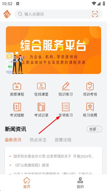 1、在綜合服務(wù)平臺(tái)首頁(yè),點(diǎn)擊專項(xiàng)練習(xí),進(jìn)入我的項(xiàng)目頁(yè)面。