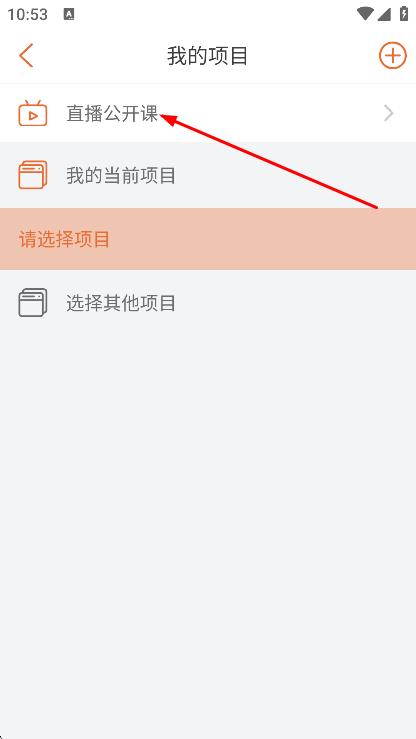 2、在我的項(xiàng)目頁(yè)面,點(diǎn)擊直播公開課,進(jìn)入今日直播頁(yè)面。