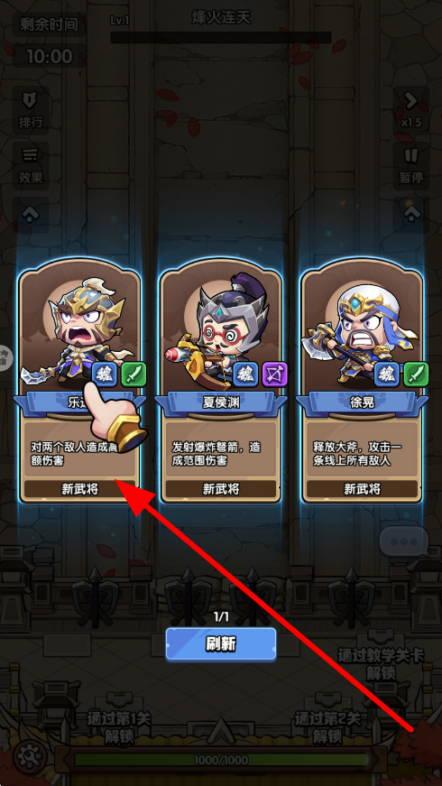 2、在武將選擇的界面,出現(xiàn)會展示出多個武將,每個武將都有獨特的技能效果,玩家可挑選合適的武將,助力戰(zhàn)斗順利進行。