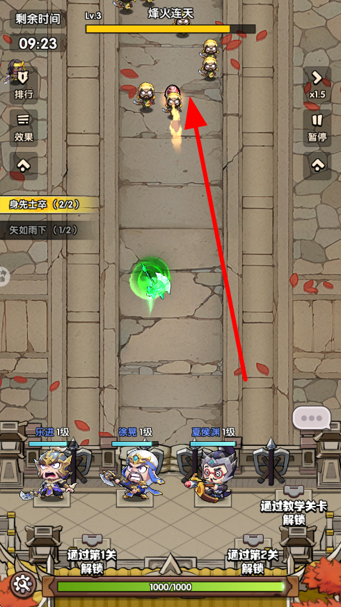 2、城防陣地布置:根據(jù)敵軍進攻路線,合理仔細思考布置防御塔與武將位置,利用地形優(yōu)勢構(gòu)建交叉火力網(wǎng),最大限度發(fā)揮武將羈絆效果。