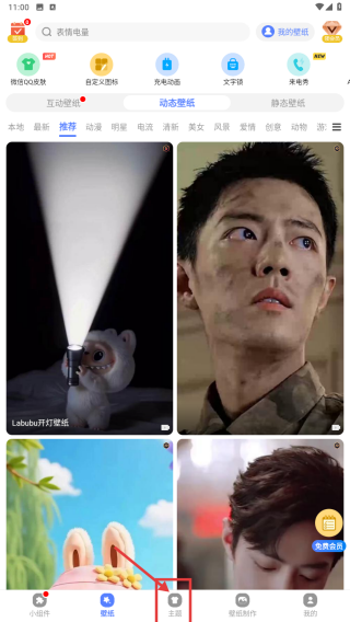 1、打開主題壁紙類APP,點(diǎn)擊底部主題選項(xiàng),進(jìn)入主題選擇頁面。