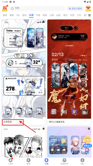 2、在主題選擇頁面,點(diǎn)擊動漫分類標(biāo)簽,進(jìn)入動漫主題列表頁面。
