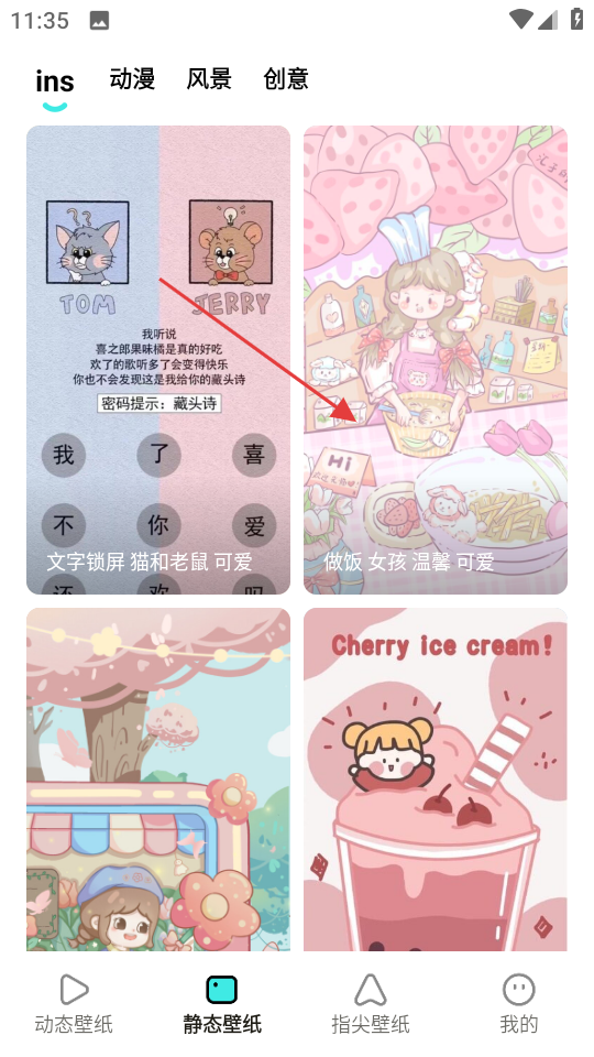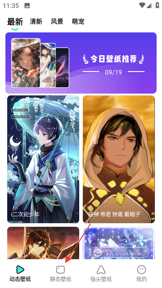 1、在首頁(yè)點(diǎn)擊底部靜態(tài)壁紙,進(jìn)入靜態(tài)壁紙頁(yè)面。