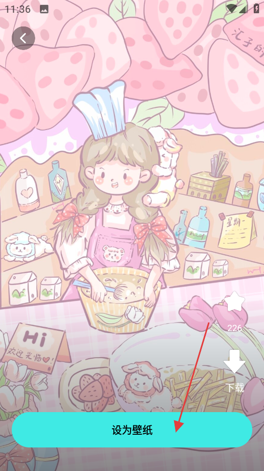 3、一鍵設(shè)置壁紙:下載完成后,可直接在軟件內(nèi)點(diǎn)擊“設(shè)置為壁紙”選項(xiàng),選擇設(shè)為桌面壁紙或鎖屏壁紙,完成操作后即可更新界面。