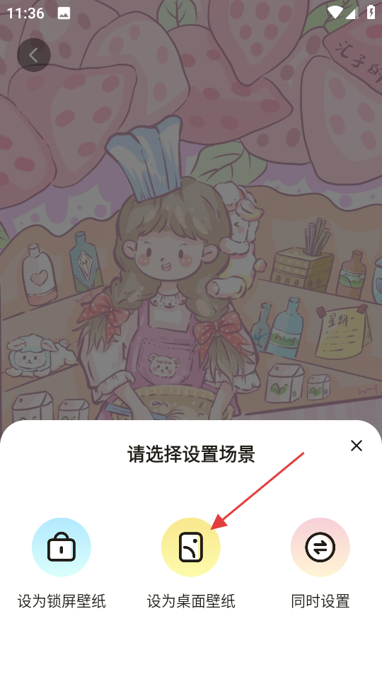 3、在壁紙?jiān)斍轫?yè)面,點(diǎn)擊設(shè)為壁紙,彈出設(shè)置場(chǎng)景選擇框。