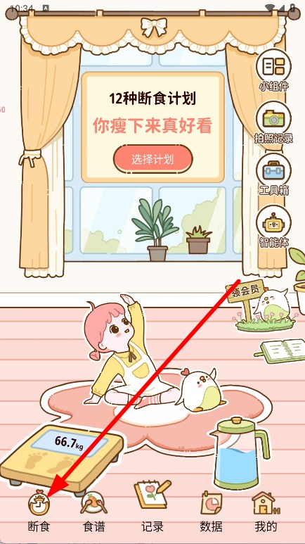 1、打開APP,點(diǎn)擊底部斷食選項(xiàng),進(jìn)入斷食計(jì)劃頁(yè)面。