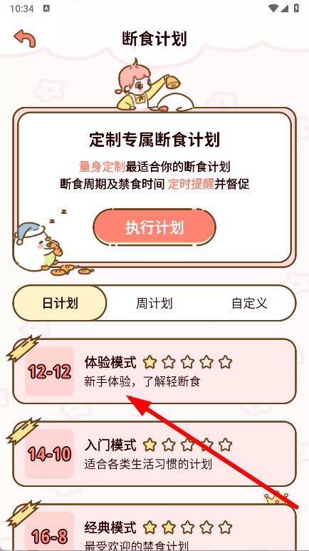 2、在斷食計(jì)劃頁(yè)面,選擇體驗(yàn)?zāi)J剑M(jìn)入該模式詳情頁(yè)。