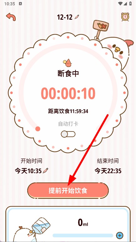 4、斷食過程中,點(diǎn)擊提前開始飲食按鈕。