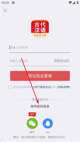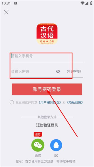 4、填寫手機號和密碼,點擊登錄按鈕即可完成登錄。