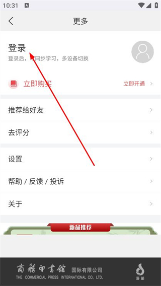 2、在彈出的更多頁面中,點擊上方的登錄選項。