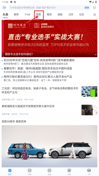 1、打開財(cái)經(jīng)類APP,點(diǎn)擊頂部股票標(biāo)簽,進(jìn)入股票相關(guān)頁面。