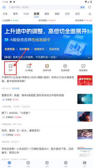 2、在股票相關(guān)頁面,點(diǎn)擊開戶選項(xiàng),進(jìn)入長江證券開戶活動(dòng)頁面。
