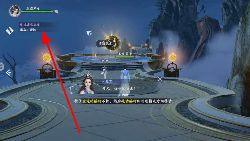 2、進入游戲后,會有主線任務指引,像玉虛宮之變等任務,跟隨任務提示,跟上相關角色,推進主線任務進程,探索仙俠世界的故事。