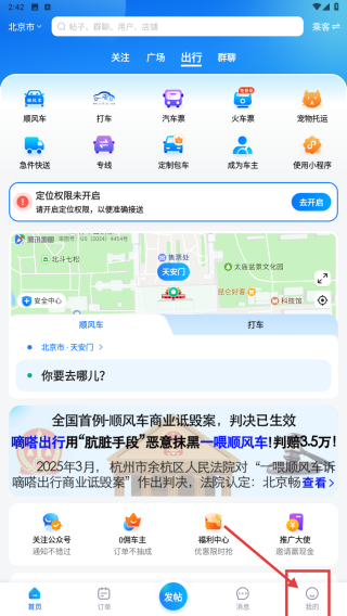 1、打開出行應(yīng)用,點擊底部我的選項,進入個人中心頁面。
