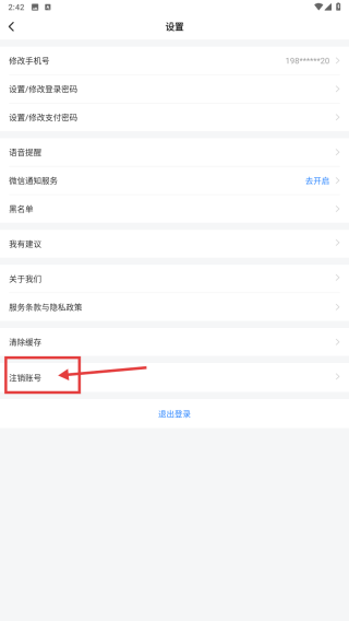 3、在設(shè)置頁面,點擊注銷賬號選項,進入注銷說明頁。