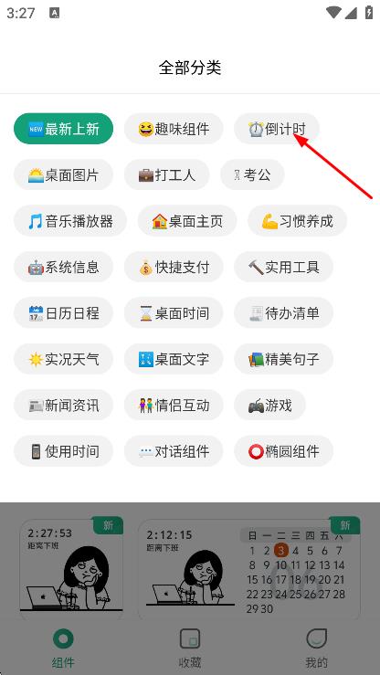 2、在全部分類頁面,點擊倒計時,進入倒計時組件頁面。