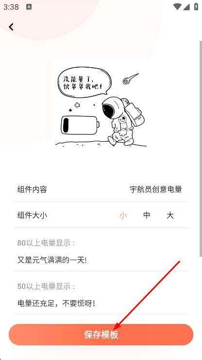 4、設(shè)置好組件內(nèi)容后,點(diǎn)擊保存模板,即可保存該電池電量組件模板。