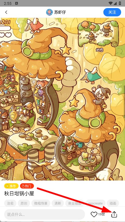 3、進(jìn)入作品詳情頁后,點(diǎn)擊右下角的分享圖標(biāo)。