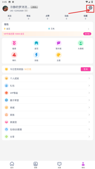 2、在個人中心,點擊右上角設置圖標,進入設置界面。