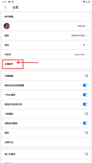 3、在設置頁面,點擊注銷賬號選項,觸發(fā)注銷確認彈窗。