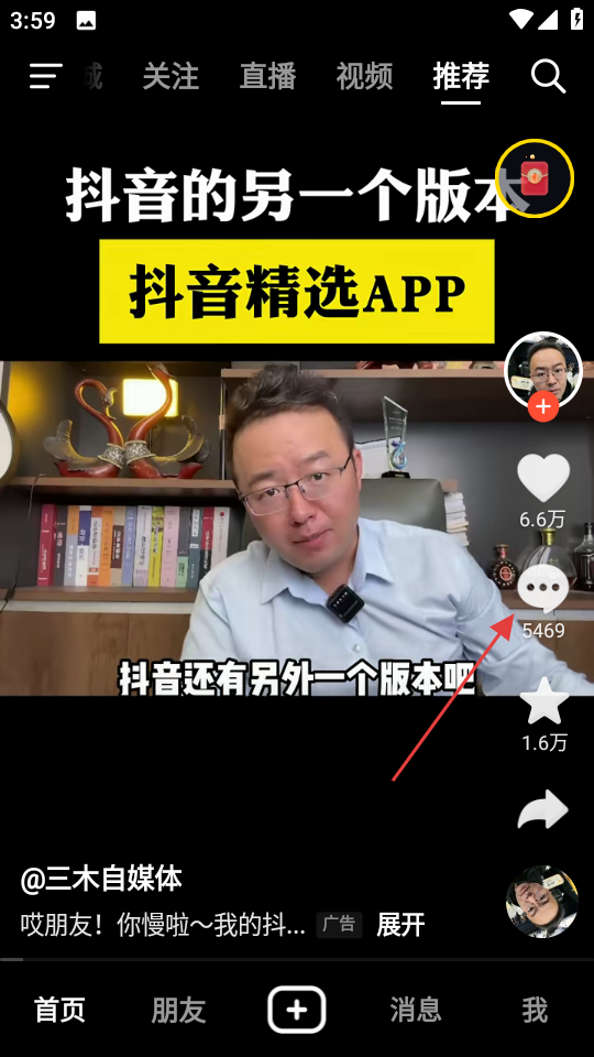 2、進(jìn)行視頻分享:找到喜歡的視頻后點(diǎn)擊下方分享按鈕,在彈出的社交平臺選項中選擇目標(biāo)平臺,或選擇發(fā)送給好友,完成視頻分享操作。