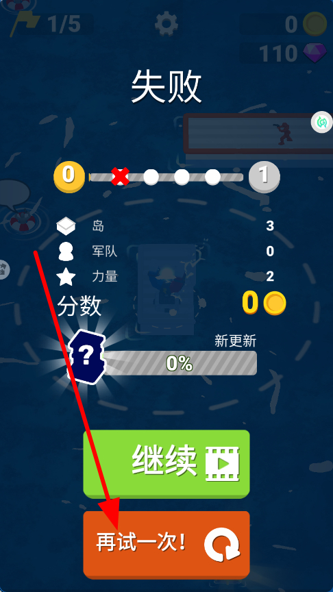 4、若游戲失敗后,會出現(xiàn)失敗界面,可點擊再試一次,重新開始游戲,總結(jié)之前的經(jīng)驗,調(diào)整策略,再次嘗試完成挑戰(zhàn)。