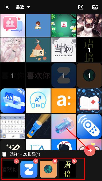3、在圖片選擇頁面,選擇多張圖片后,進入拼圖編輯頁面。