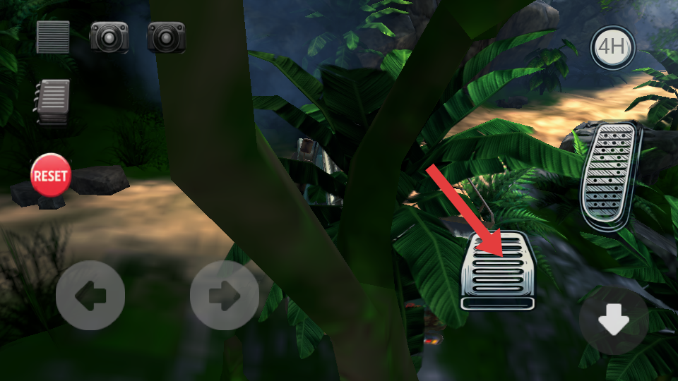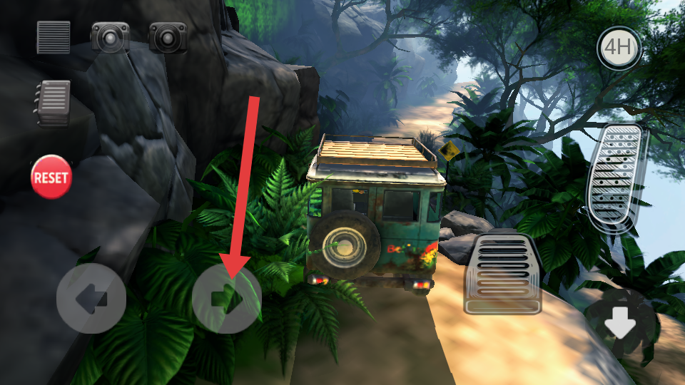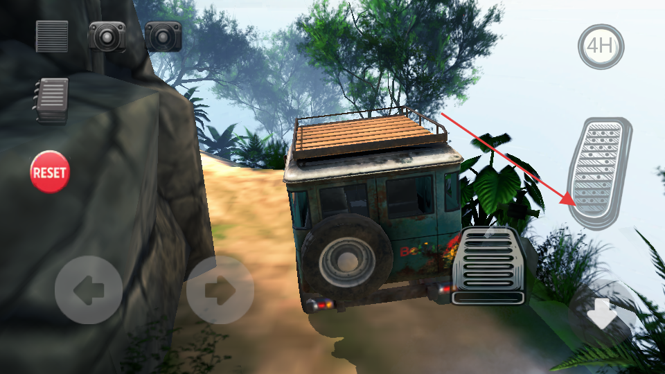 1、駕駛越野車時,通過右側的油門踏板按鍵控制車輛前進動力,使其在崎嶇的越野路徑上行駛。