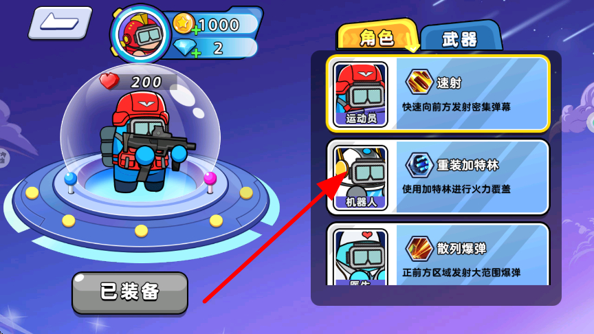 2、角色選擇上,運動員有速射技能,能快速向前方發(fā)射密集彈幕,壓制敵人,機器人可使用重裝加特林進行火力覆蓋,在團戰(zhàn)或對付大量敵人時效果顯著。