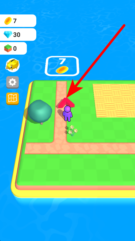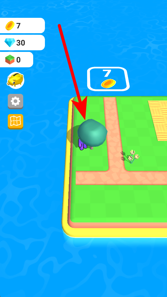 1、首先操控角色移動,跟隨指引前往不同區(qū)域,比如沿著路徑移動,到達標有金幣標識的地方,可獲取金幣資源,為后續(xù)建設積累資金。