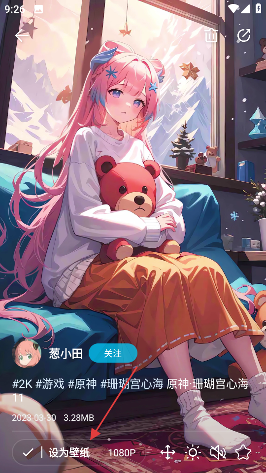 2、在圖片詳情頁,點(diǎn)擊設(shè)為壁紙按鈕,進(jìn)入設(shè)置壁紙頁面。