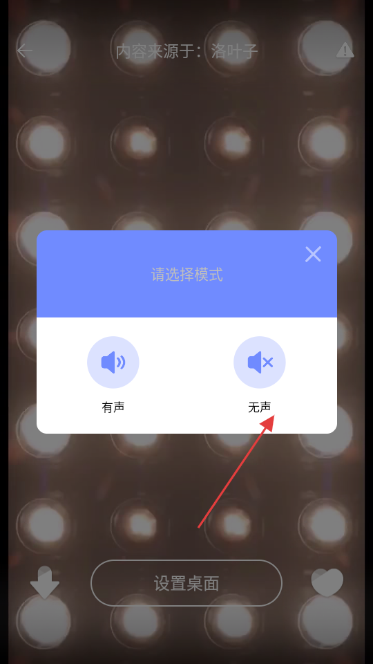 4、在模式選擇框中,選擇無(wú)聲模式,完成桌面壁紙?jiān)O(shè)置。