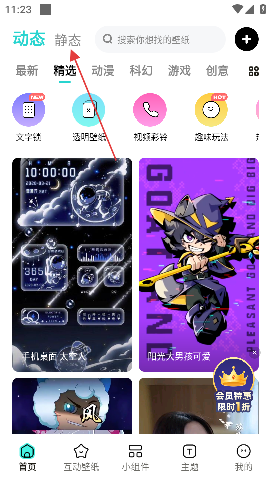 1、在宇宙壁紙首頁(yè),點(diǎn)擊靜態(tài)選項(xiàng),進(jìn)入靜態(tài)壁紙頁(yè)面。