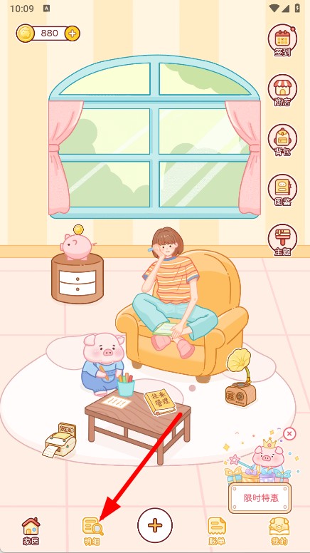 1、點(diǎn)擊底部明細(xì)選項(xiàng),進(jìn)入賬單統(tǒng)計(jì)頁面。