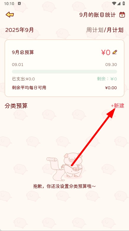 3、在賬目統(tǒng)計(jì)頁面點(diǎn)擊+新建,進(jìn)入設(shè)置分類預(yù)算頁面。