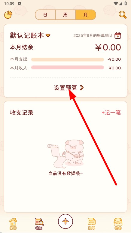2、在賬單統(tǒng)計(jì)頁面點(diǎn)擊設(shè)置預(yù)算,進(jìn)入賬目統(tǒng)計(jì)頁面。