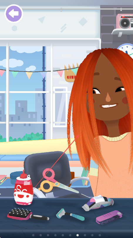 3、卡通視覺氛圍營造:整體采用圓潤可愛的卡通畫風,角色表情生動、場景色彩柔和,理發(fā)過程中還有趣味動畫反饋,讓視覺體驗充滿童真與愉悅感。