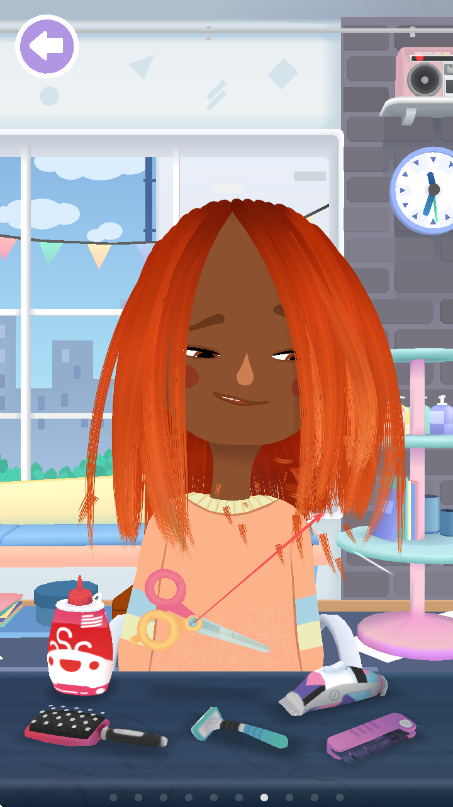 2、操作反饋直觀有趣:使用剪刀時會有發(fā)絲飄落動畫,染發(fā)時能實時看到顏色變化,裝飾搭配后角色會露出滿意表情,直觀反饋增強操作代入感。