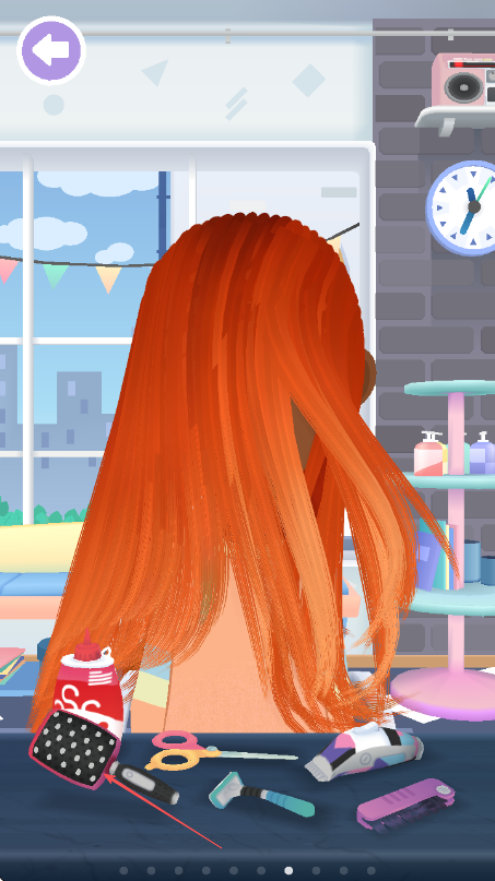4、若想改變發(fā)色,點擊染發(fā)瓶道具,為顧客的頭發(fā)上色,完成獨特的發(fā)型設計。