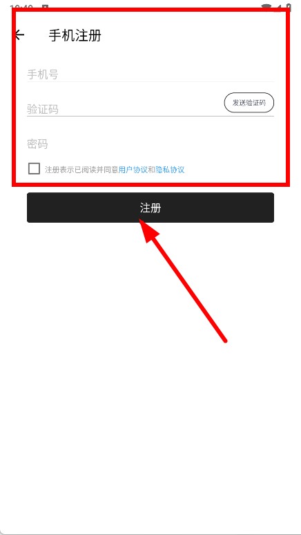 4、輸入手機(jī)號(hào)、驗(yàn)證碼、設(shè)置密碼,勾選后點(diǎn)擊注冊(cè),完成賬號(hào)注冊(cè)。