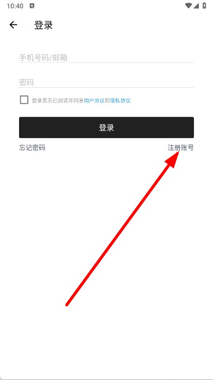 3、在登錄頁面點(diǎn)擊注冊(cè)賬號(hào),進(jìn)入手機(jī)注冊(cè)頁面。