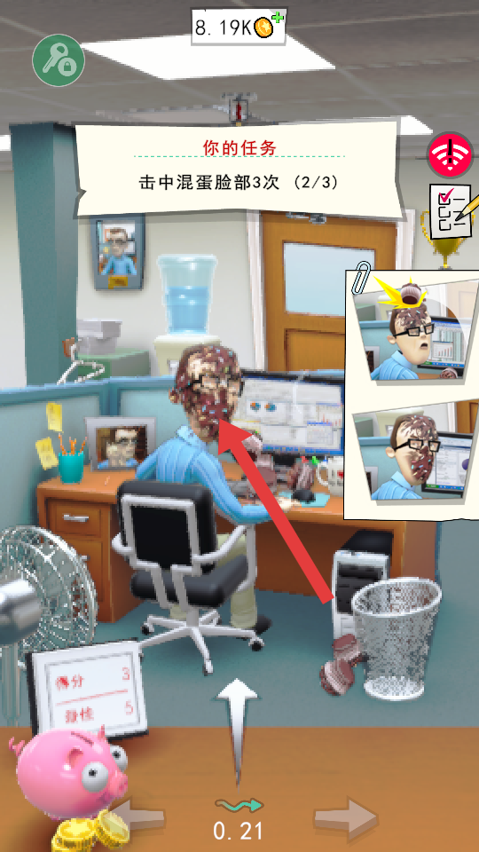 3、接受擊中混蛋臉部3次的任務(wù)后,精準(zhǔn)瞄準(zhǔn)目標(biāo)臉部發(fā)起攻擊,逐步完成任務(wù)進(jìn)度。
